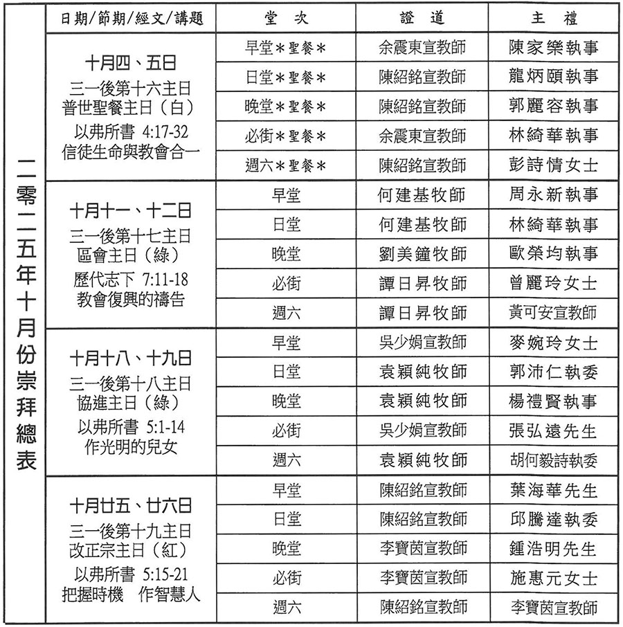 崇拜總表 (禮頓道堂)
