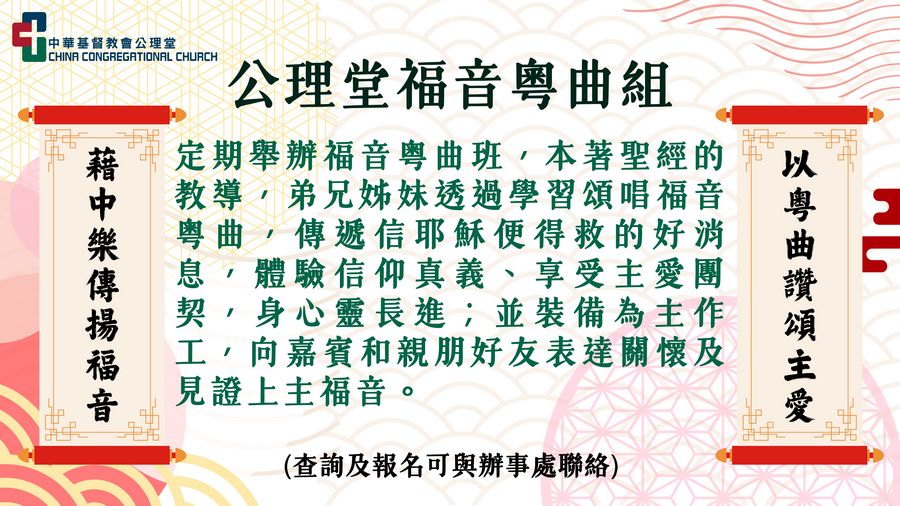 © 2026 中華基督教會公理堂 版權所有 不得轉載 網頁設計及維護