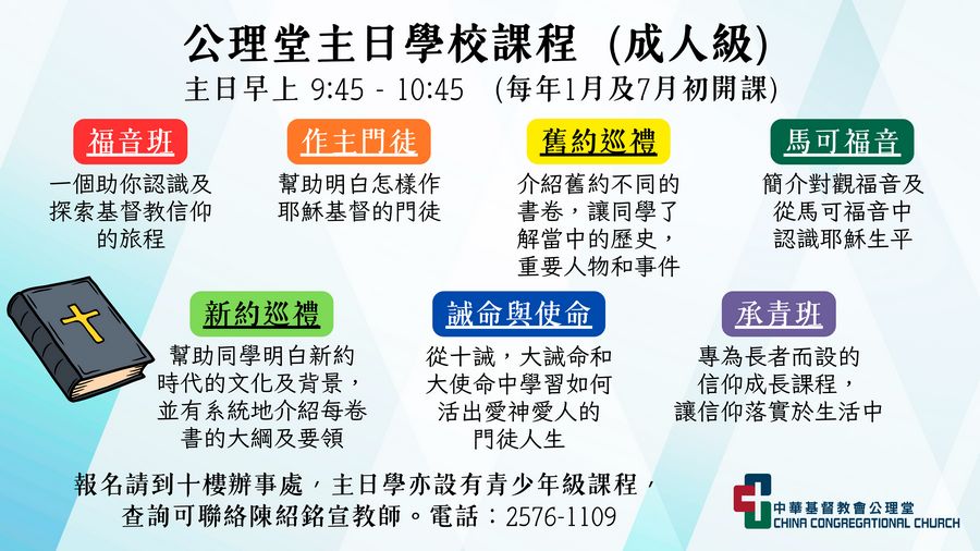 © 2026 中華基督教會公理堂 版權所有 不得轉載 網頁設計及維護